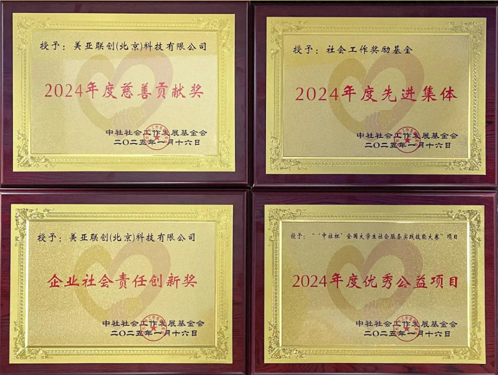 美亚联创一直坚信,在公益之路上,总有一些力量温暖人心,总有一些行动改变世界。这些荣誉不仅是对美亚联创过去努力的肯定,更是激励企业未来前行的强大动力。未来,美亚联创将继续践行社会责任,以更加饱满的热情、更加创新的举措,投身到公益事业当中。美亚联创也呼吁更多企业加入到公益行列,携手并肩,共同为社会的美好未来贡献一份企业力量。