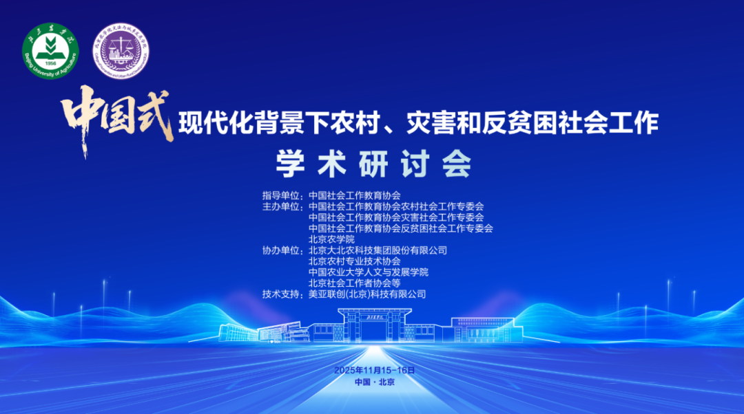 2025年11月15日-16日,“中国式现代化背景下农村、灾害和反贫困社会工作学术研讨会” 在北京成功举办。作为本次会议的技术支持单位,美亚联创(北京)科技有限公司全程助力会议顺利开展,以数智技术为社会工作学术交流与实践创新注入科技动能。本次研讨会汇聚了全国高校学者、社会工作实务专家、行业代表等多方力量,围绕农村振兴、灾害治理、反贫困实践等核心议题展开深入研讨。