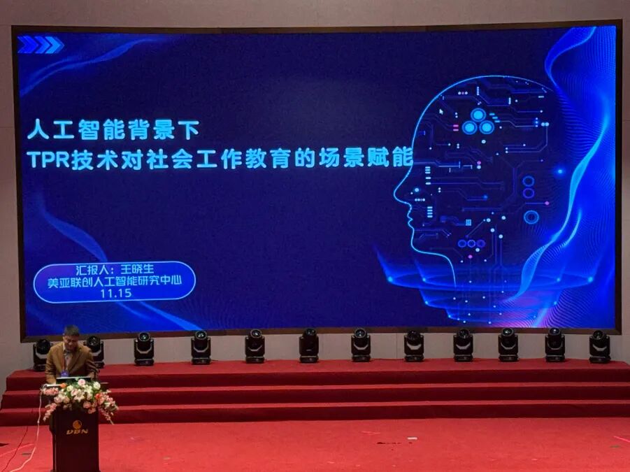 随后重点介绍了TPR技术在社会工作教育中的场景赋能成果:在教学层面,构建互动课堂、情景案例、虚拟实训等数字化场景,丰富教学形式;在实践层面,通过实习管理、过程督导、共享实践平台,打通理论与实务的衔接通道;在研究层面,提供定量定性研究支持、数据采集分析、动态监测等功能,助力学术研究提质增效。其提出的 “数智融合赋能社会工作全链条发展” 理念,获得了现场专家学者的广泛关注与认可。