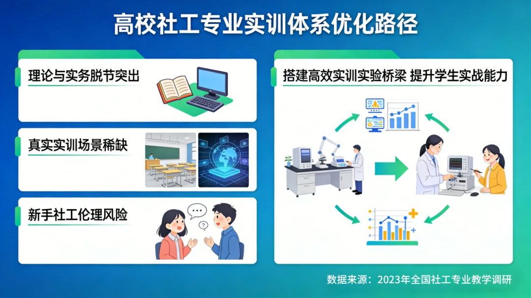 理论与实务脱节突出,真实实训场景稀缺,新手社工直面服务对象存在伦理风险,如何搭建高效实训实验桥梁,提升学生实战能力?