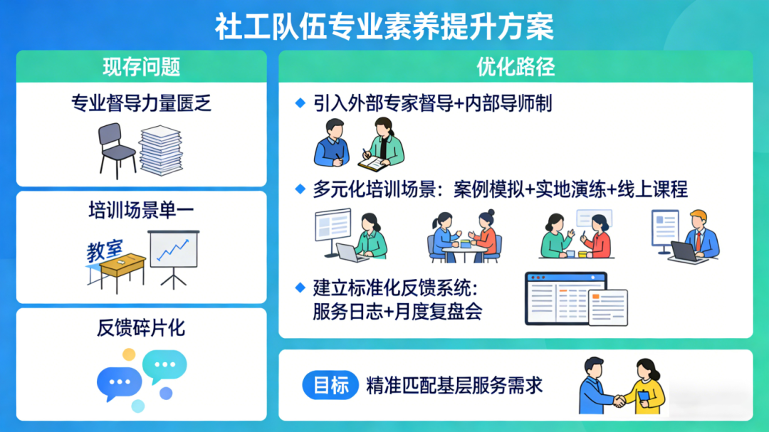 专业督导力量匮乏,培训场景单一、反馈碎片化,如何快速提升社工队伍专业素养,精准匹配基层服务需求?