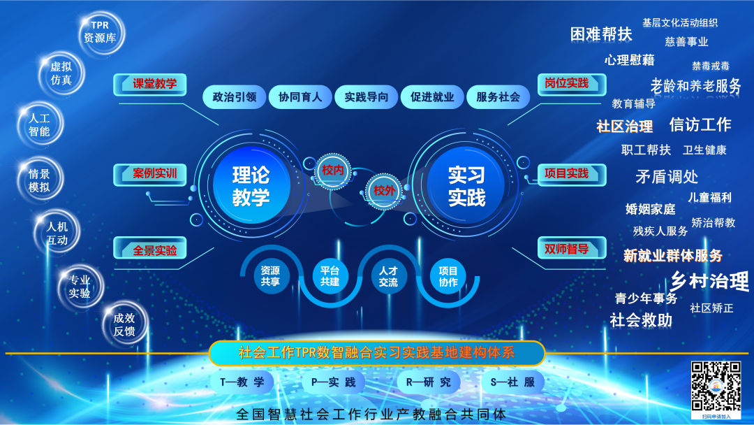 搭建政府、高校、机构协同共建机制,全力支撑“双导师制”落地,可联合制定实训、实验、实习大纲与考核标准。TPR数智融合平台整合优质教学资源库、案例库,实现线上督导、跨区域资源共享,推动三实一体化内容与基层治理真实需求精准对接,实现“资源共享、平台共建、人才交流、项目协作”无缝衔接。以北京、上海、广东、重庆、深圳、贵阳等地为例,TPR数智技术通过深入融合政行校企社相关应用领域,以平台为枢纽链接校内校外多方资源,共同促进了社会工作“理论教学+岗位实践+项目实践”产教融合协同育人机制,实现了社会工作人才创新培养模式。