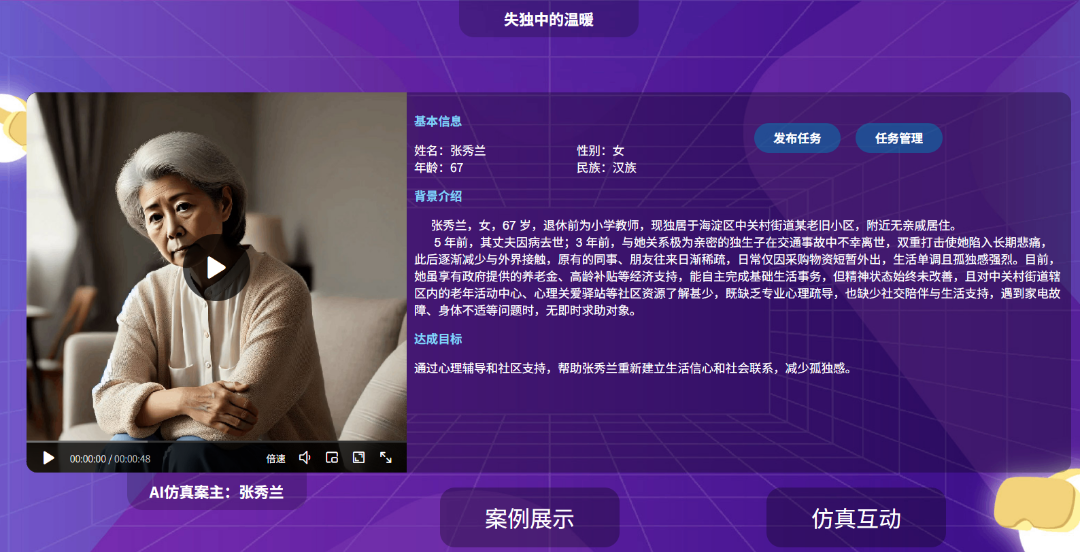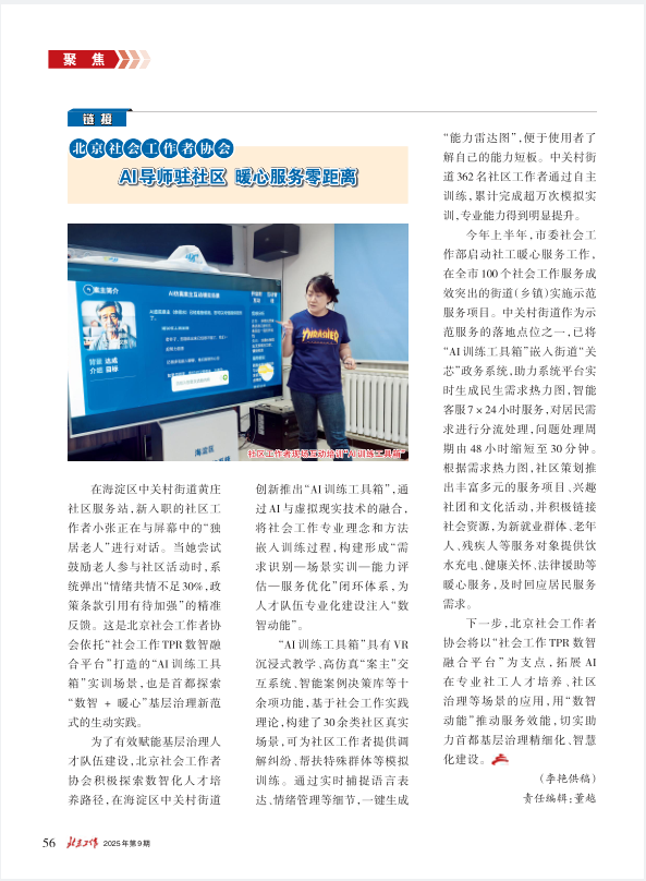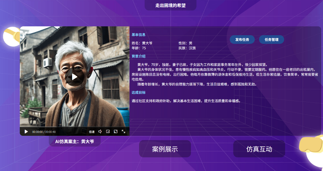 内置独居老人、困境儿童、新就业群体等多类型高仿真“AI案主”,基于自然语言处理与情感分析技术,可模拟不同性格、诉求的沟通场景,并随学生应对策略动态调整互动逻辑。训练后自动生成量化评估报告,从沟通技巧、共情能力、政策解读准确性等维度给出精准改进建议,让实训从“模糊评价”转向“数据驱动”。从行业应用角度北京社会工作者协会率先将社会工作TPR数智融合平台融入海淀区中关村街道黄庄社区服务站有效促进了学生及新入职工作人员的岗位实践、项目实践专业能力提升。