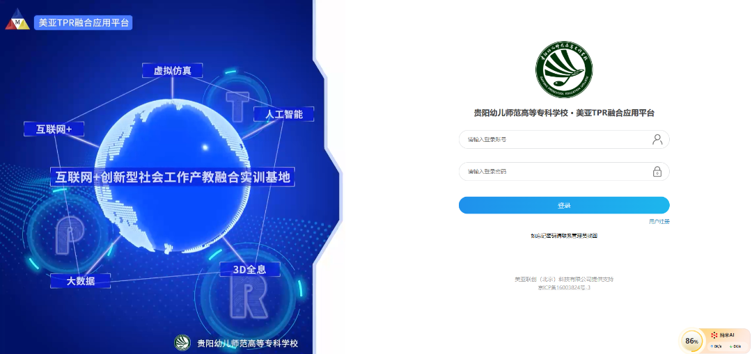 别让痛点阻碍发展!美亚联创TPR数智融合平台,以“3+N”超融合顶层架构为核心,融合大数据、虚拟仿真、AI人工智能等相关数智化技术,构建“人、岗、课、证、赛、教、学、研、创、管、评、传”12维应用体系,精准赋能社会工作实习实践基地校内校外+线上线下互联互通的全链条建设,让“政策要求”转化为“人才实效”!